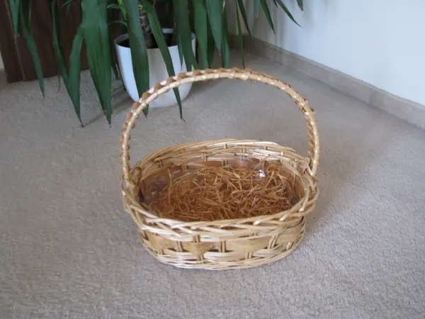 Kosz w stanie idealnym, bez śladów użytkowania, czysty, nie zniszczony. Sianko w środku.