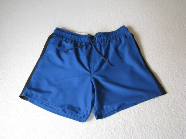 Sprzedam nowe, krótkie spodenki męskie firmy Livergy w kolorze granatowym z czarnymi akcentami, wykonane z lekkiej, przewiewnej i przyjemnej w dotyku, szybkoschnącej tkaniny odpornej na działanie promieni słonecznych.